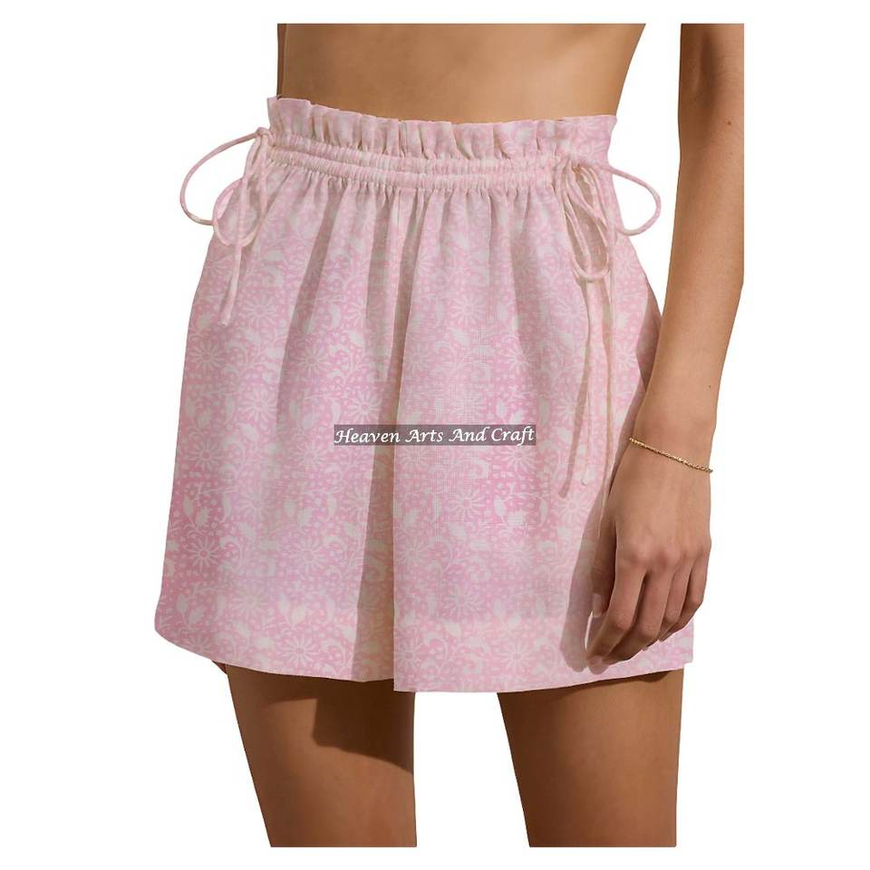 กางเกงขาสั้นลายพิมพ์ผ้าฝ้าย 100% ใส่สบายสำหรับวันหยุดสุดสัปดาห์, สาวฮอตเซ็กซี่ ใส่กางเกงขาสั้นช่วงสุดสัปดาห์