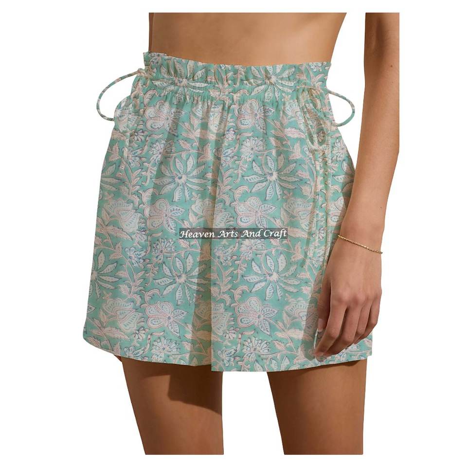 ชื่อสินค้า:กางเกงขาสั้นผ้าฝ้าย 100% พิมพ์ลายบล็อกมือ ใส่สบายๆ วันหยุดสุดสัปดาห์