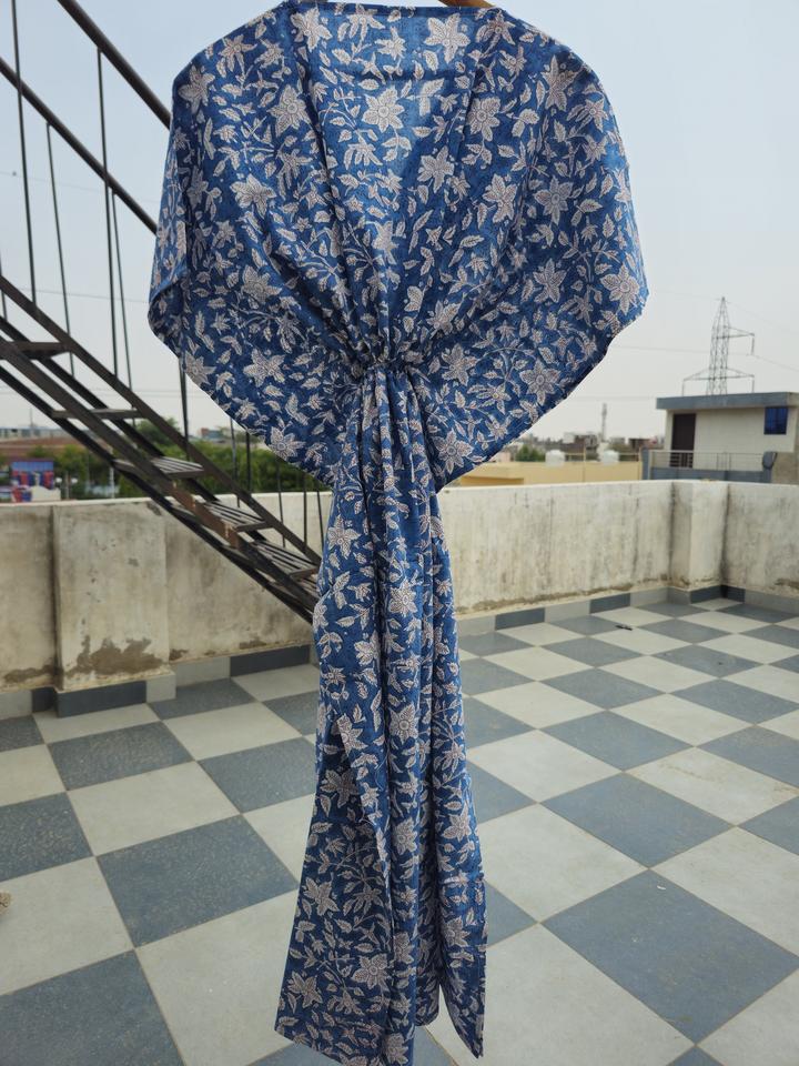 ชุดคลุมชายหาดผ้าฝ้ายพิมพ์ลายบล็อก ชุดนอน ชุดลำลองฤดูร้อนสำหรับผู้หญิง คุณแม่ ผ้าฝ้าย ชุดคลุมชายหาด