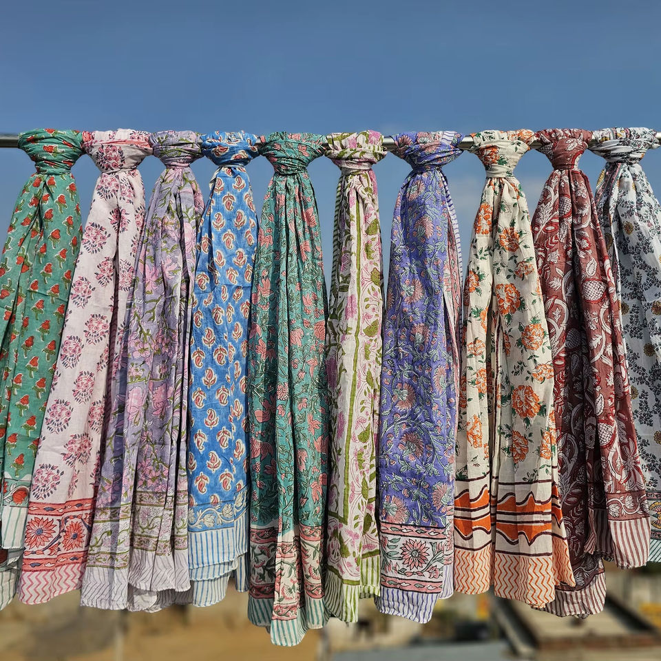 ผ้าพันคอพารีโอพิมพ์ลายด้วยมือจากอินเดีย ผ้าซารองชายหาด ผ้าเนื้อนุ่ม ผ้าวอยล์ เป็นมิตรกับสิ่งแวดล้อม ผ้าคลุมชายหาดสำหรับฤดูร้อน ผ้าคลุมชายหาดทันสมัย