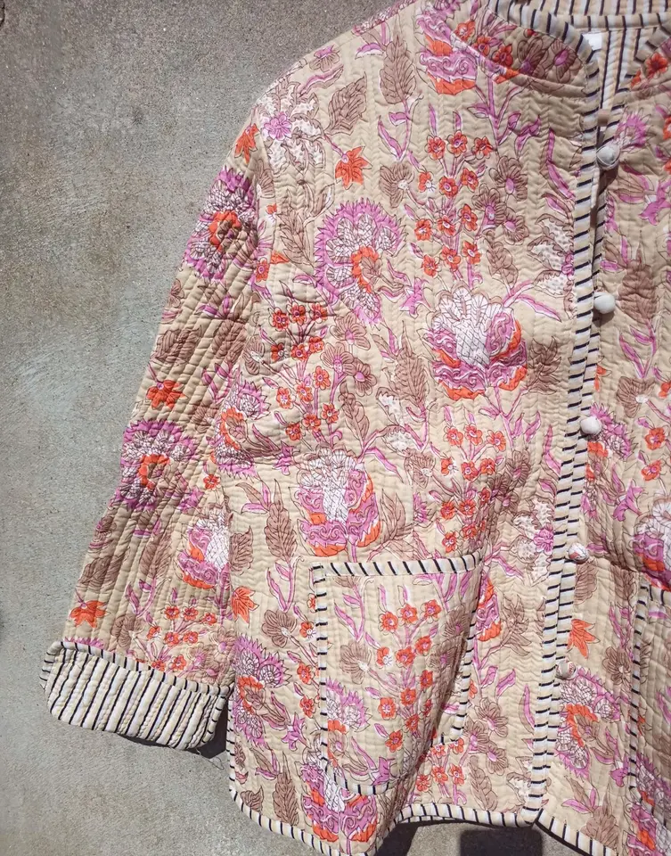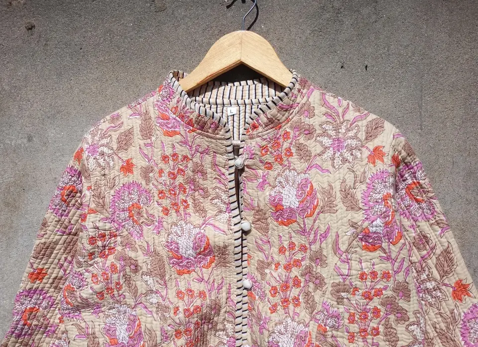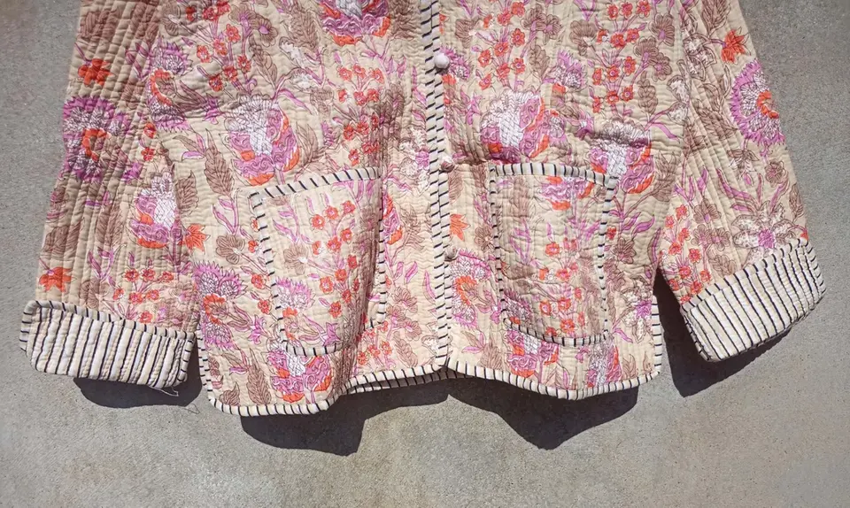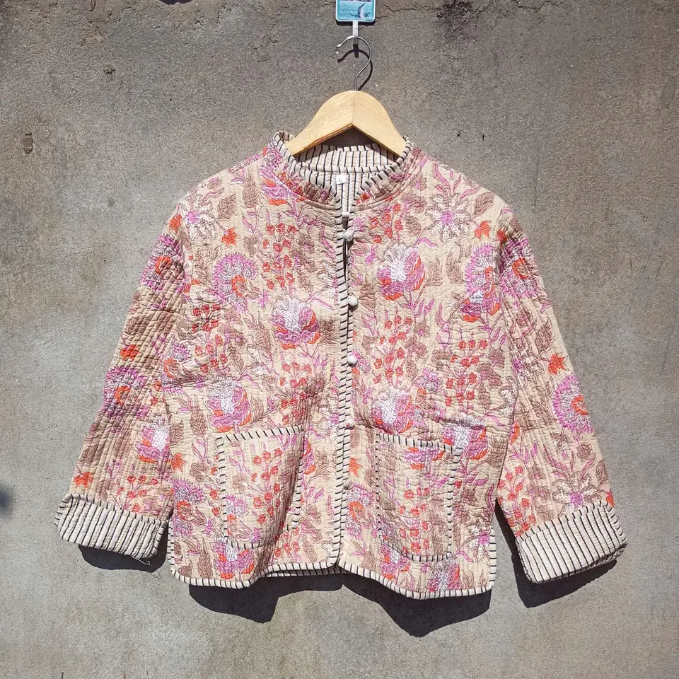 แจ็กเก็ตผ้าฝ้ายพิมพ์ลายแบบกลับด้านได้สำหรับผู้หญิงเสื้อโค้ทผ้าฝ้ายทำมือสไตล์โบฮีเมียนสำหรับใส่ในฤดูร้อน