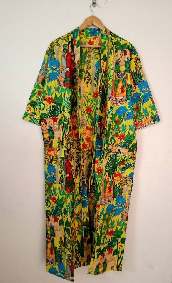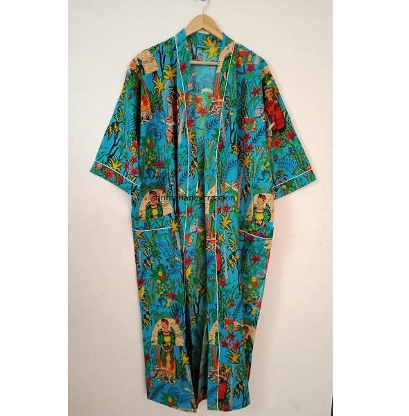 ชุดกิโมโนผ้าฝ้ายพิมพ์ลายดอกไม้ ออกแบบสำหรับผู้หญิงที่ชอบชุดนอนสบายๆ และสไตล์อยู่บ้าน