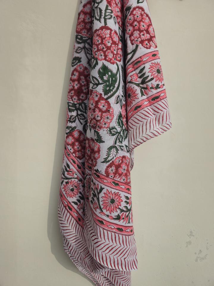 ผ้าโสร่งผ้าฝ้ายพิมพ์ลายบล็อกมือสไตล์อินเดีย