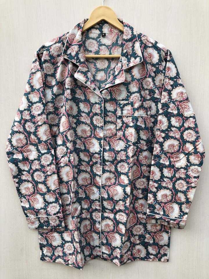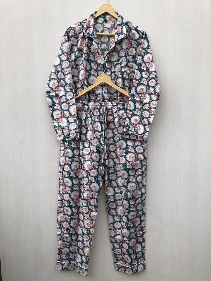 ชุดนอนลายดอกไม้สไตล์อินเดีย ชุดนอนผ้าฝ้าย ชุดนอนสำหรับงานปาร์ตี้ ชุดนอนสำหรับใส่กลางคืน ของขวัญสำหรับเธอ