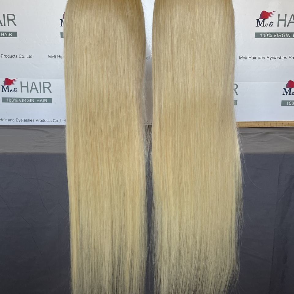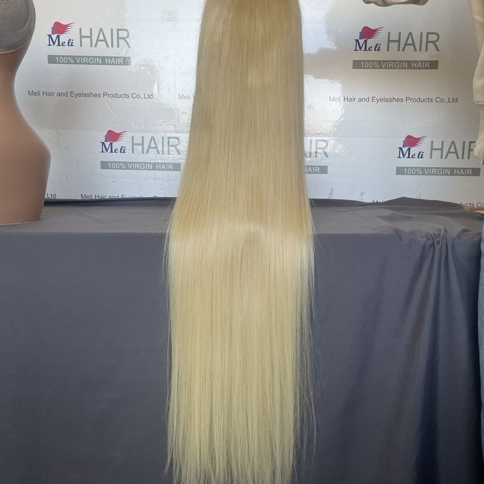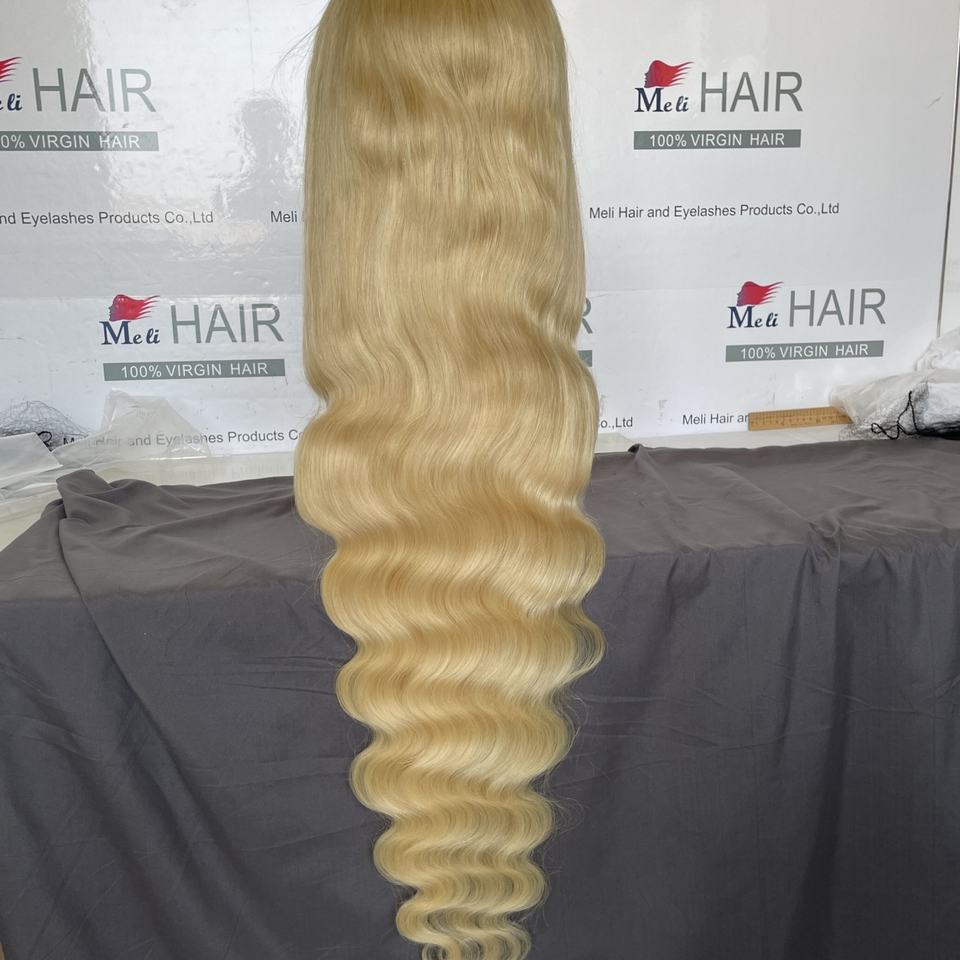 วิกผมบราซิลสีบลอนด์ ขนาด 32-40 นิ้ว ผมแท้สำหรับผู้หญิงผิวสีดำ ผมเวอร์จินแท้สี 613 แบบตรงและแบบลอนบอดี้เวฟ วิกผมยาวแบบติดลูกไม้ด้านหน้า ขายส่ง