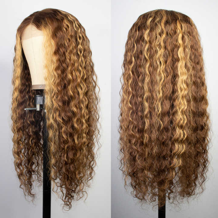 Blonde Highlight Curly Human Hair Wigs Water Wave Lace Front Wig For Women 13*4 Lace Frontal Wig Natural Hair 100%