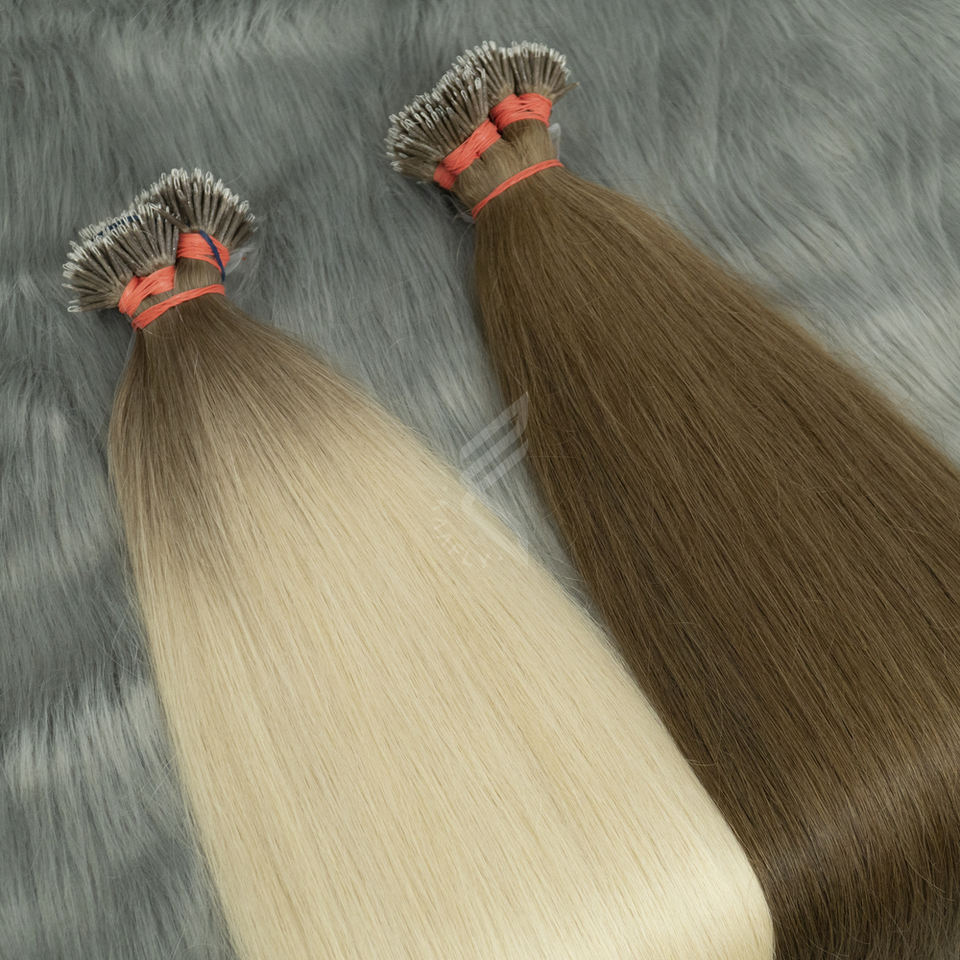 ผมต่อแหวนเล็กสีน้ำตาลออมเบรผมต่อเส้นผมมนุษย์แท้สีบลอนด์ผมลอนนุ่มสไตล์ Fumi ย้อมย้อมผม