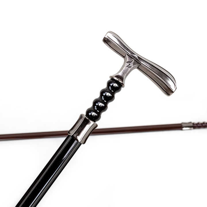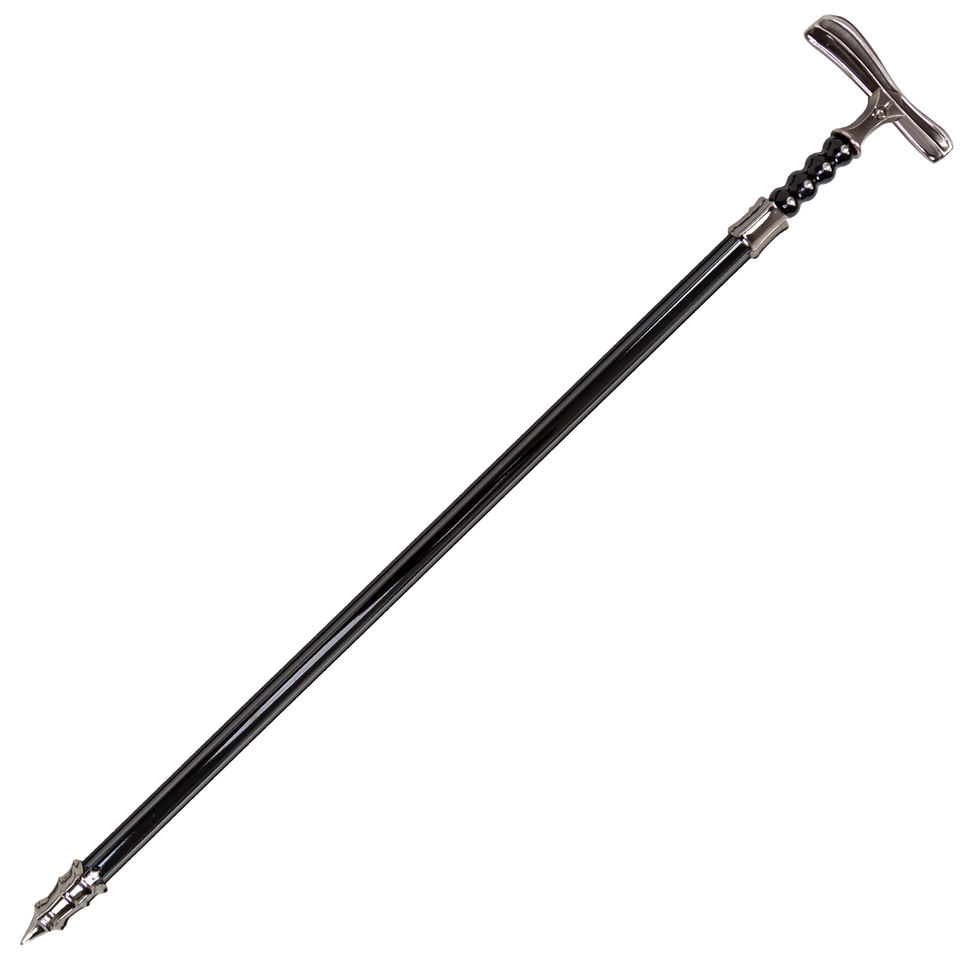 Bloodborne Inspired T-Handle Threaded Cane Black Shiny Finish Metal Pointed Tip Game Decorative Stick