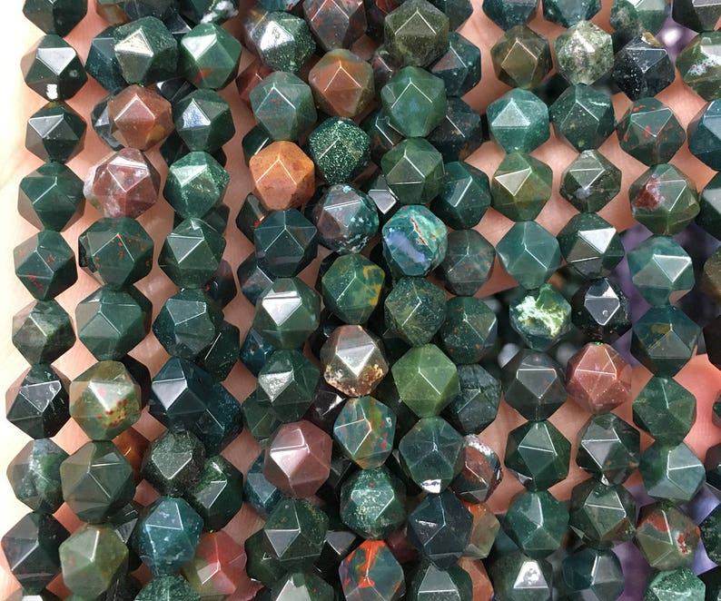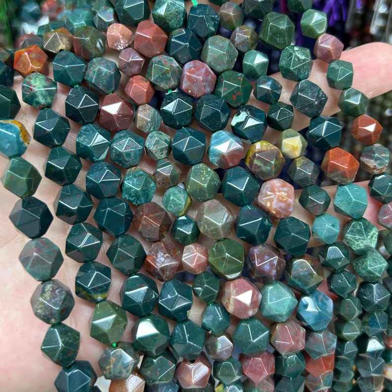 ลูกปัดบลัดสโตนทรงเหลี่ยม ลูกปัดพลอยสีแดงเขียวธรรมชาติ สำหรับทำเครื่องประดับ งานฝีมือ DIY