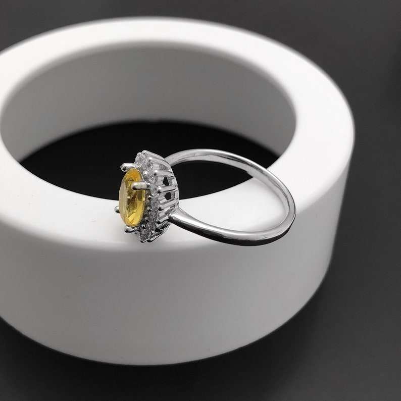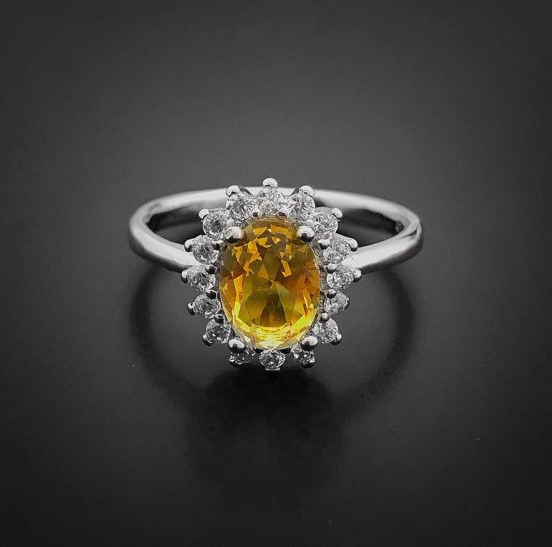 แหวนเงินแท้ประดับพลอยซิทรินธรรมชาติทรงรัศมี สำหรับเป็นแหวนหมั้นหรือแหวนแทนใจ ของขวัญสำหรับผู้หญิงในเดือนพฤศจิกายน