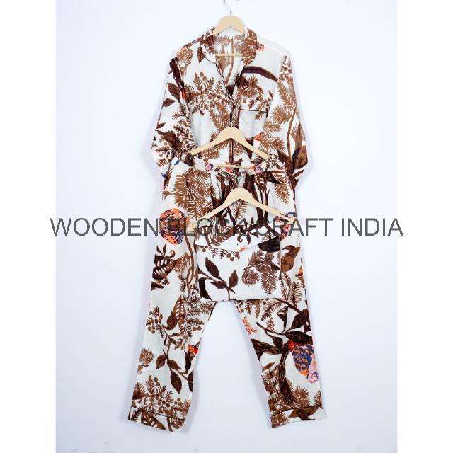 ชุดนอนผ้าฝ้ายพิมพ์ลายดอกไม้สไตล์วินเทจสำหรับผู้ใหญ่ ใหม่ล่าสุด ผ้าฝ้ายแท้ 100% ทำด้วยมือจากอินเดีย