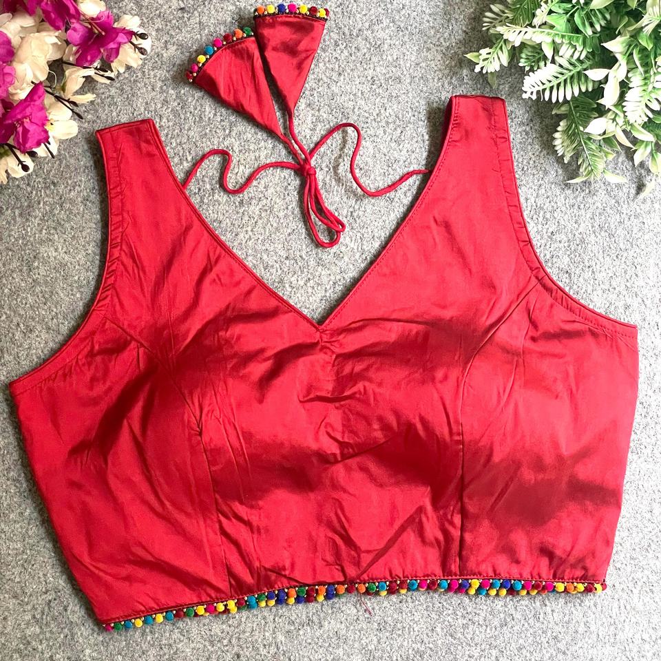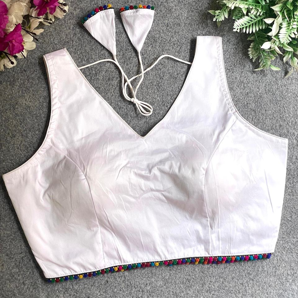 เสื้อเบลาส์คอวีลูกไม้ถักสีเรียบๆทำจากผ้าไหมหนาพร้อมแขน10นิ้ว
