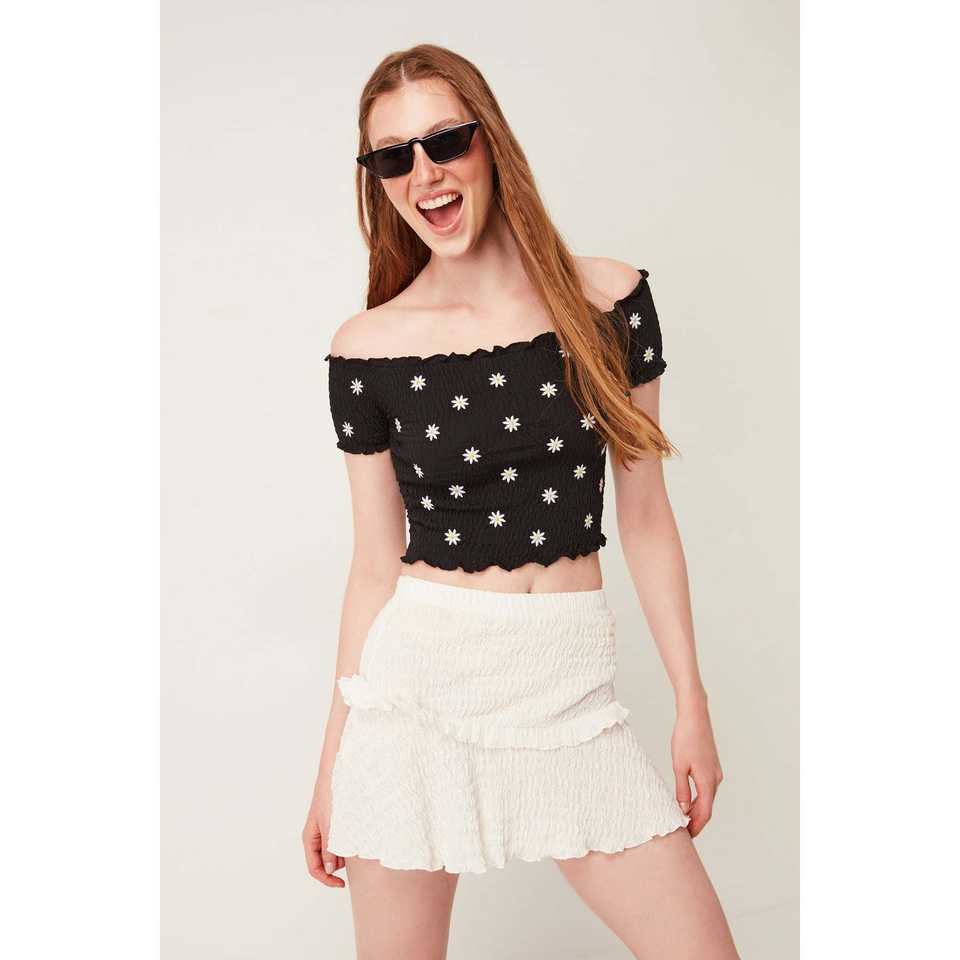 เสื้อเบลาส์ปักลายดอกเดซี่บนผ้าพลีท