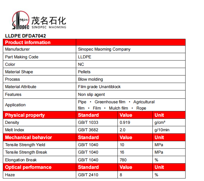 ชื่อผลิตภัณฑ์:เม็ดพลาสติกความหนาแน่นต่ำ LLDPE
