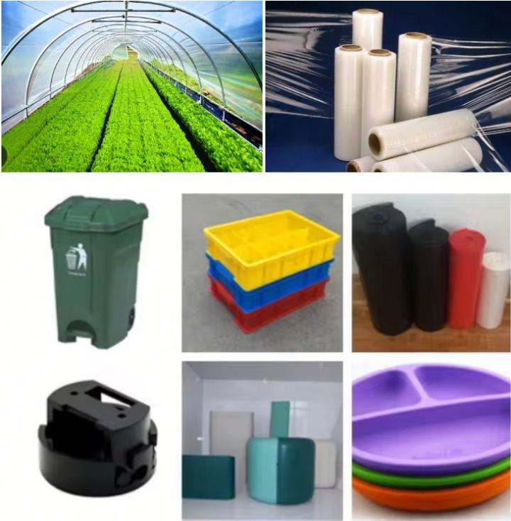 เกรดทั่วไป, แผ่นเกรด, เกรดอาหาร, ส่วนประกอบเครื่องใช้ในบ้าน, เกรดฟิล์ม, เกรดท่อ, อุปกรณ์เสริมเครื่องมือไฟฟ้า, ชิ้นส่วนอิเล็กทรอนิกส์และไฟฟ้า, เกรดออพติคอล, ชิ้นส่วนยานยนต์, เกรดการบรรจุ, เกรดสายไฟและสายเคเบิล, อุปกรณ์กีฬา, วัสดุพิเศษสำหรับฝาขวด, โคมไฟ, ผลิตภัณฑ์ที่มีผนังบางใบสมัคร