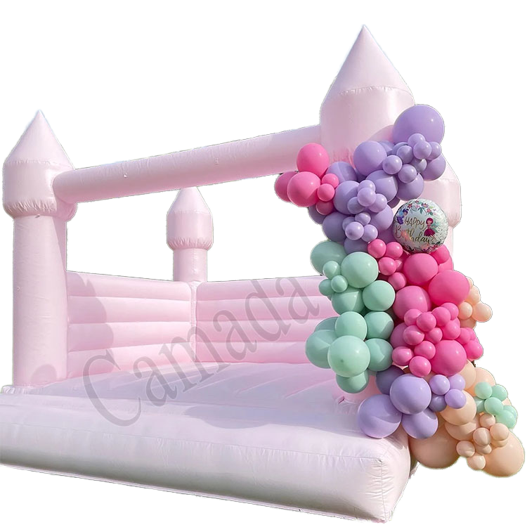 บ้านเป่าลมพีวีซีสีชมพูอ่อนบ้านเด้งเด้งปราสาทกระโดดสำหรับงานปาร์ตี้และงานแต่งงาน