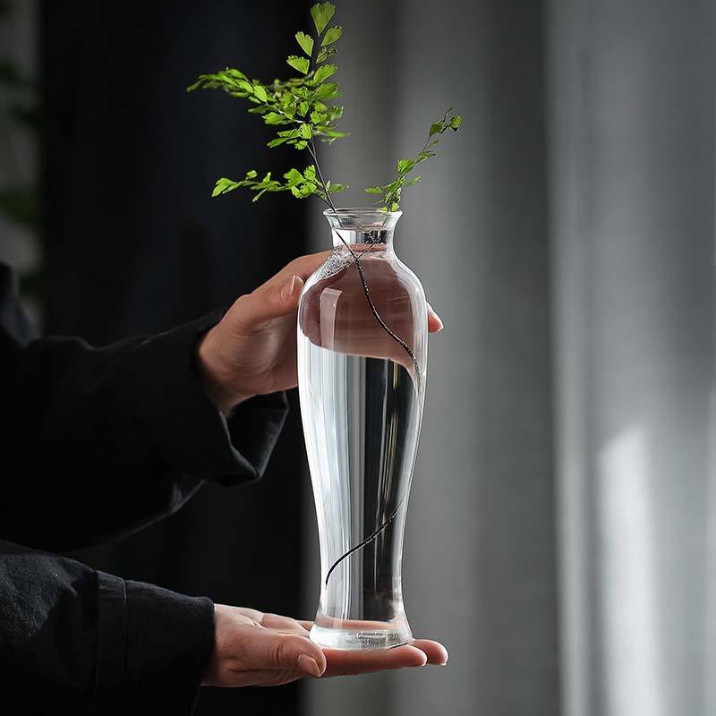 แจกันแก้วเป่าขึ้นรูปขัดเงา โปร่งใส สำหรับจัดดอกไม้ ปลูกพืชไร้ดิน ตกแต่งบ้าน โต๊ะอาหาร ห้องนั่งเล่น สไตล์เซนจีนใหม่