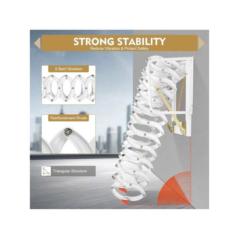 บันไดอัลลอยแบบดึงลงได้บันไดพับติดผนังสำหรับใช้ในบ้านได้รับการรับรอง EN131สีฟ้า12ขั้นตอน
