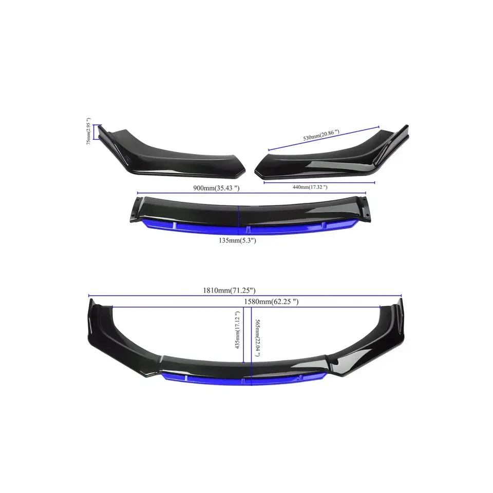 ขอบด้านหน้า4ชิ้นสีน้ำเงินเปียโนอเนกประสงค์กันชนหน้าสีดำติดด้วยประสิทธิภาพ