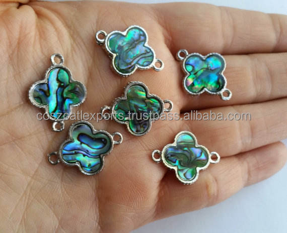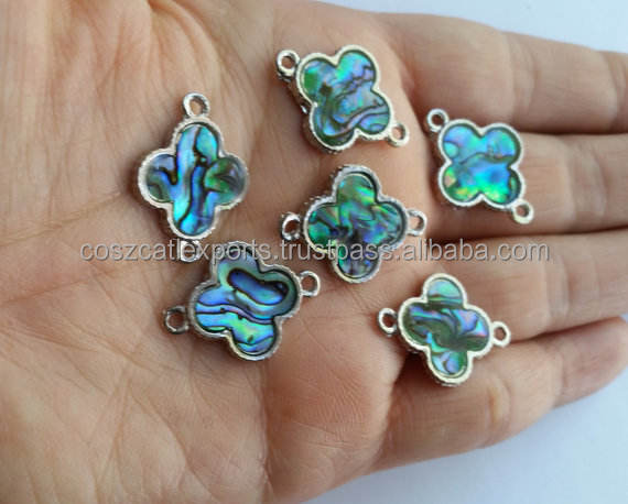 ลูกปัดหินรูปหอยเป๋าฮื้อสีน้ำเงินประดับจี้รูปดอกโคลเวอร์ทางศาสนาแบบคลาสสิกชุบทองเงินสเตอร์ลิง