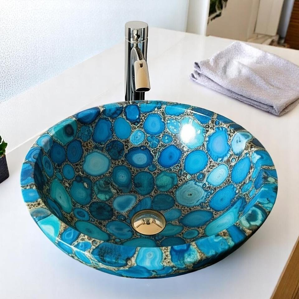 Blue Agate Bathroom Sink I Blue Agate Handwash Bowl I Custom Agate Sink I Export Supplies Bathroom Sink I Countertop Sink