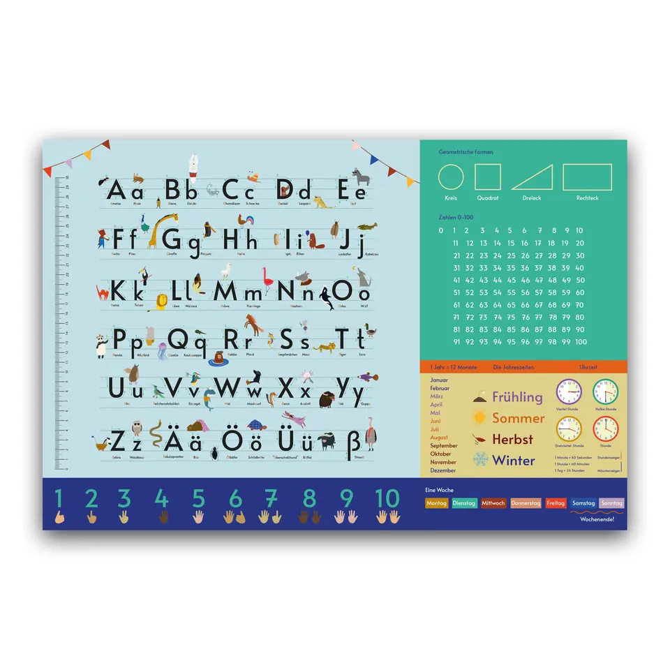 แผ่นรองโต๊ะลายตัวอักษรสีฟ้าสำหรับเด็ก 60 X 40 ซม. อุปกรณ์กิจกรรมและเกม