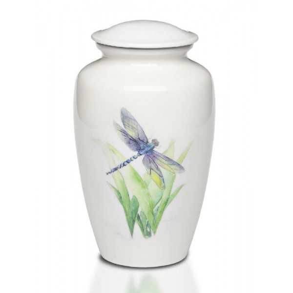 โกศบรรจุอัฐิมนุษย์ทำจากอะลูมิเนียมสีน้ำเงิน - โกศศพโลหะน้ำหนักเบาพร้อมแถบตกแต่ง - ขนาดสำหรับผู้ใหญ่