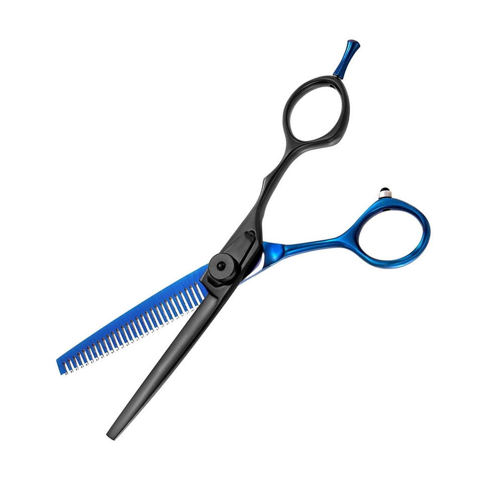 กรรไกรตัดผมเหล็กเยอรมันกรรไกรตัดผมสีฟ้าและสีดำ