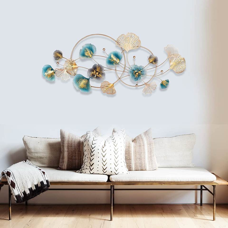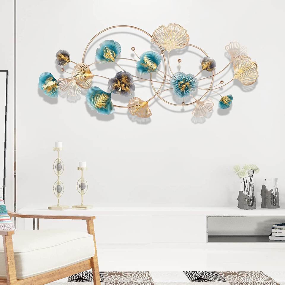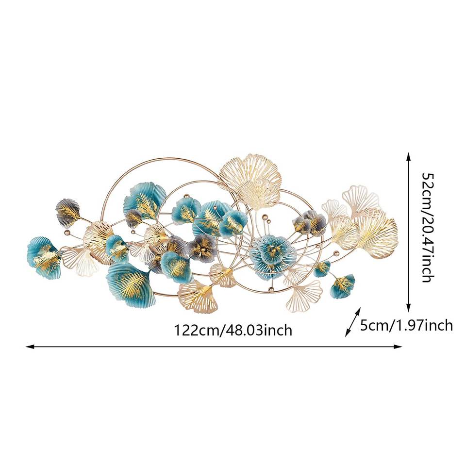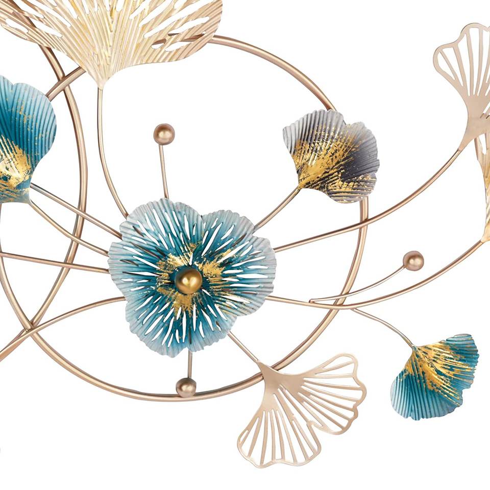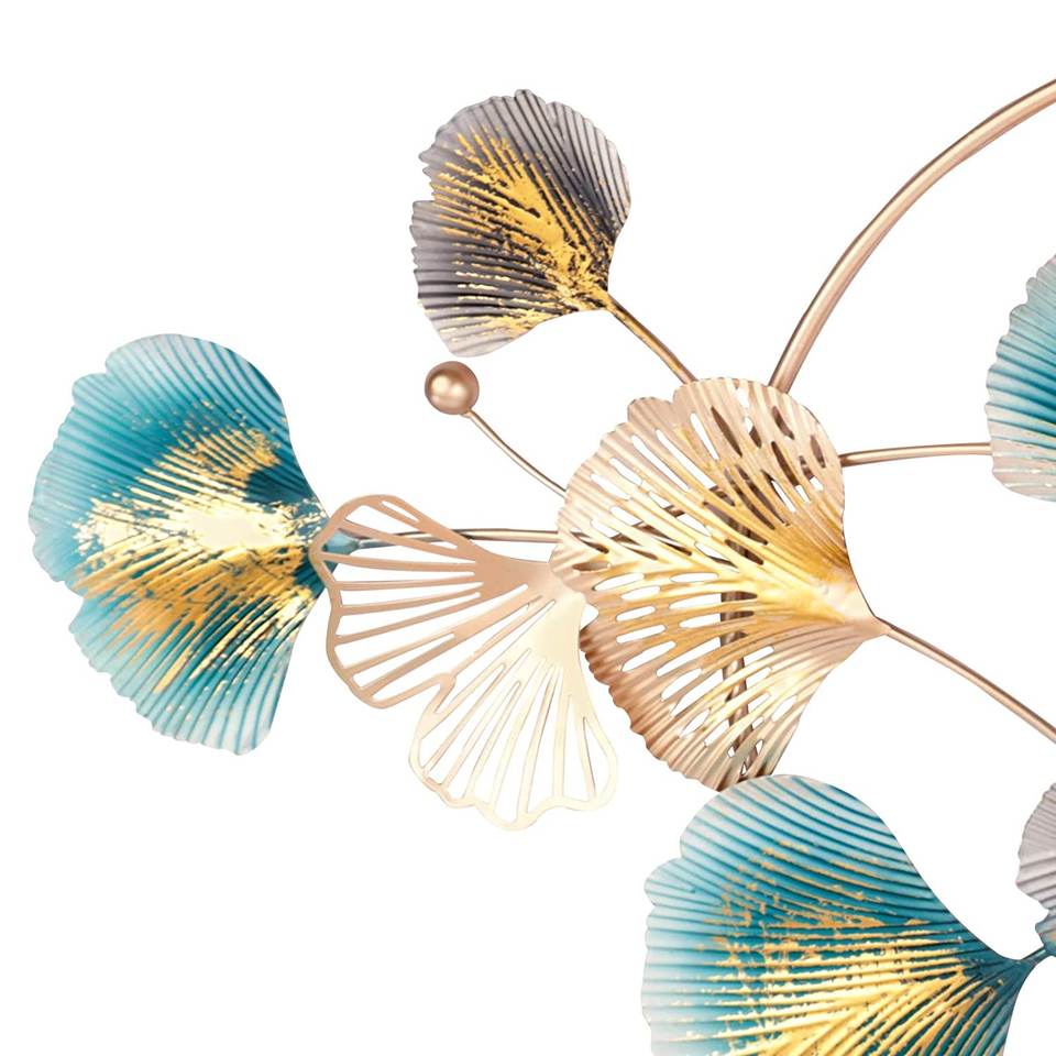 กรอบใบแปะก๊วยสีน้ำเงินและทองงานศิลปะโลหะสำหรับตกแต่งผนังสวยงามไร้สนิม