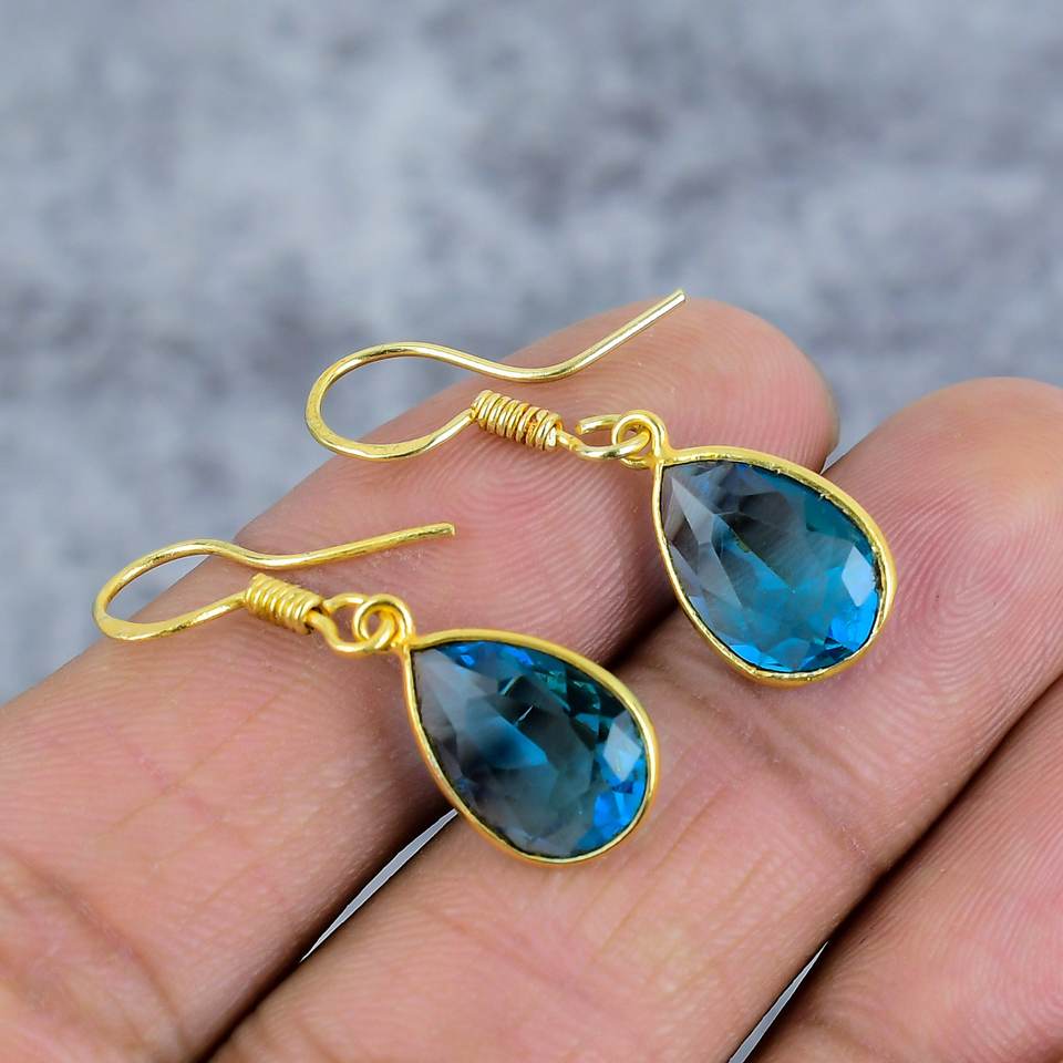 925อะพาไทต์สีน้ำเงินเงินสเตอร์ลิงต่างหูลูกแพร์ชุบทองเหมาะสำหรับเป็นของขวัญงานแต่งงานงานเลี้ยง