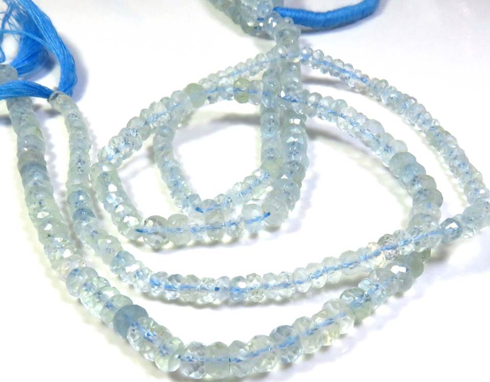 ลูกปัดเจียระไนพลอยสีฟ้าขนาด3.8-4.5มม. ลูกปัดหินสีธรรมชาติ12 "ทำด้วยมือ