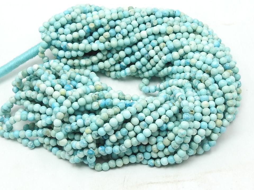 ลูกปัดทรงกลมสีฟ้าอาริโซนาเทอร์ควอยซ์ ทรงสลีปปิ้งบิวตี้ ขัดเงาเรียบ ขนาด 16 นิ้ว ความยาวประมาณ 3 มม. ได้รับการรับรองจากผู้ที่สาม