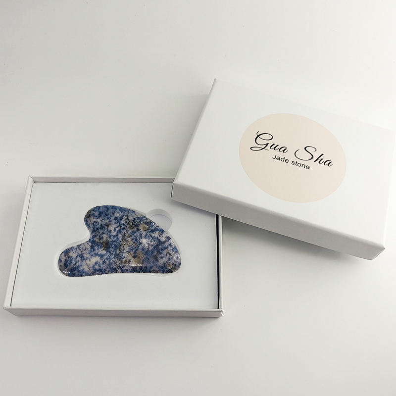 หินกัวซาอะเวนเจอรีนสีน้ำเงินพร้อมกล่อง กัวซาโรสควอตซ์รูปหัวใจ เครื่องมือสำหรับนวดกัวซา หินหยกพร้อมกล่องสำหรับขูด