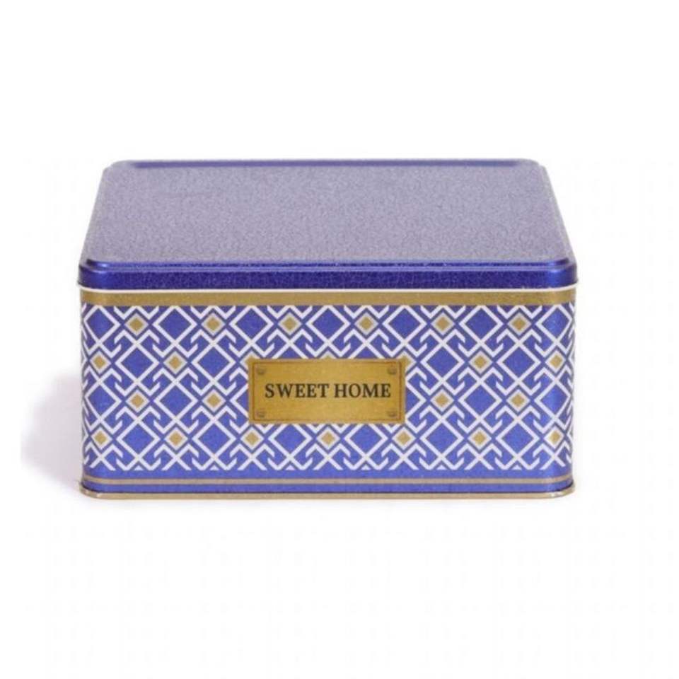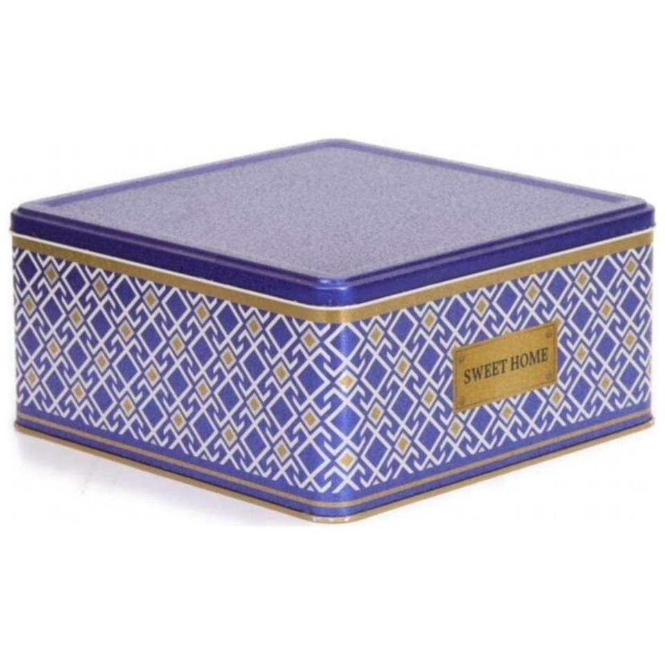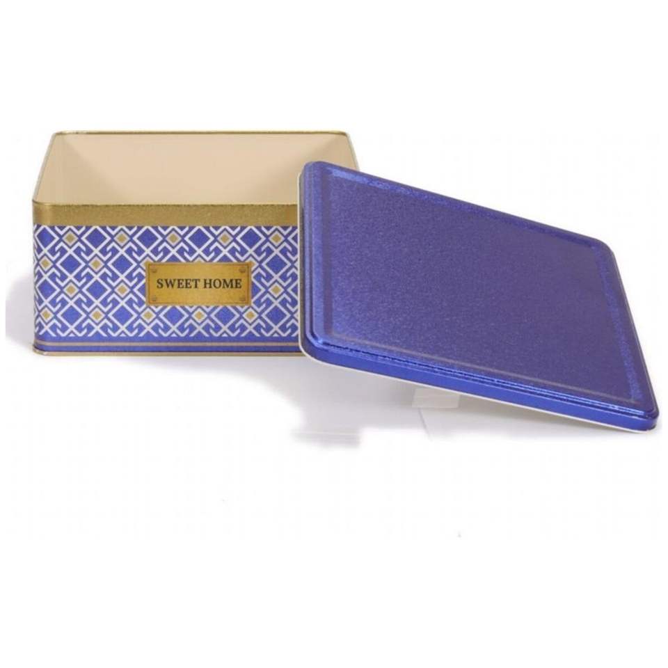 กล่องเก็บของทรงสี่เหลี่ยม Kontensan EF02993 พื้นหลังสีน้ำเงิน ลายเส้นเรขาคณิต ฝาปิดแบบเลื่อน ขนาด 5.8 ลิตร 235x235x110 มม. ลายไร้รอยต่อ