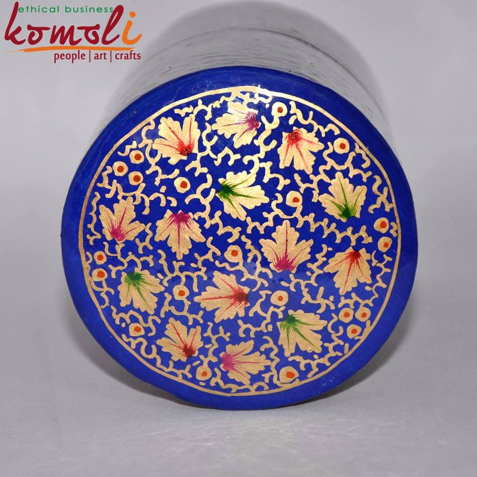 กระบอกดอกไม้สีฟ้าเป็นมิตรกับสิ่งแวดล้อม Kashimir กระดาษ Mache มือวาดกล่องกระดาษขายส่ง Mache กล่อง