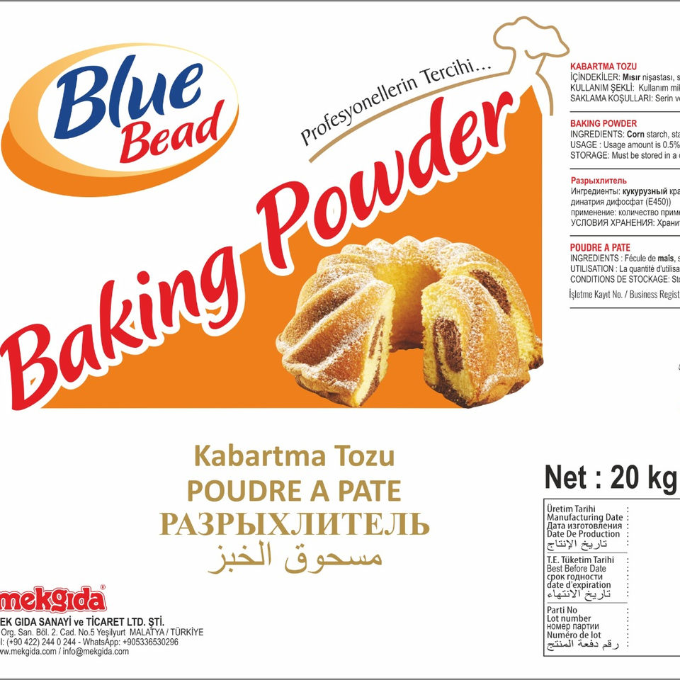 ผงฟูลูกปัดสีฟ้า20กก. ในขนมอบถุงคราฟท์เพื่อเพิ่มปริมาณและแบ่งเบาพื้นผิวของขนมอบ