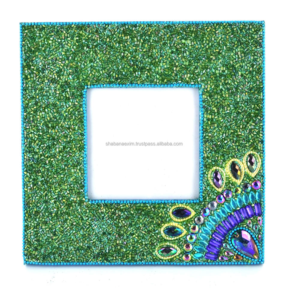 กระจกตกแต่งกรอบลูกปัดสีน้ำเงินลายยูนิคสไตล์นกยูง สำหรับแต่งหน้าในห้องนอนหรือแขวนผนัง ดีไซน์หรูหรา