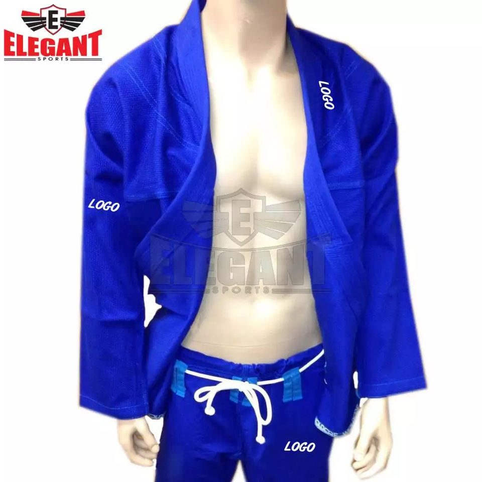 ชุด BJJ กางเกงขาสั้นสีฟ้าสำหรับนักมวยมวยไทยและยิวจิวจิสึชุดต่อสู้แบบเรียบสง่างามกีฬาออกแบบโลโก้ได้ตามที่ต้องการ