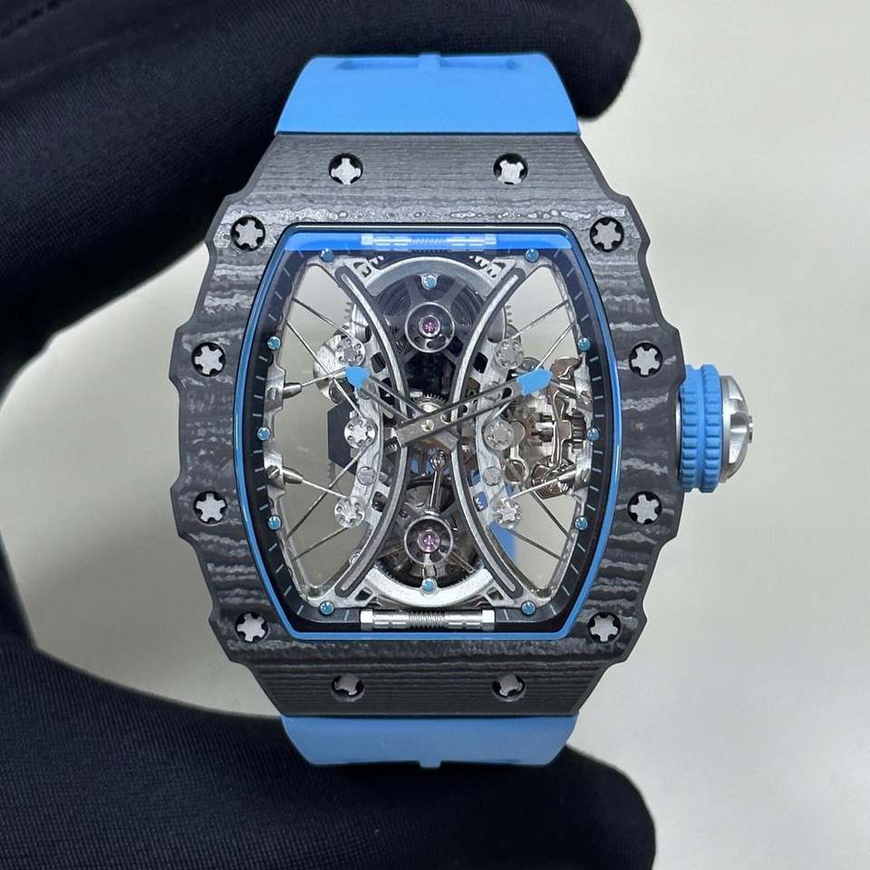 นาฬิกาข้อมือตัวเรือนคาร์บอนไฟเบอร์สีน้ำเงินดำ หน้าปัดแบบสเกเลตัน ปรับแต่งได้ ระบบอัตโนมัติ ทูร์บิญอง เหมาะสำหรับใส่ในชีวิตประจำวันและกิจกรรมกลางแจ้ง ดีไซน์หรูหรา