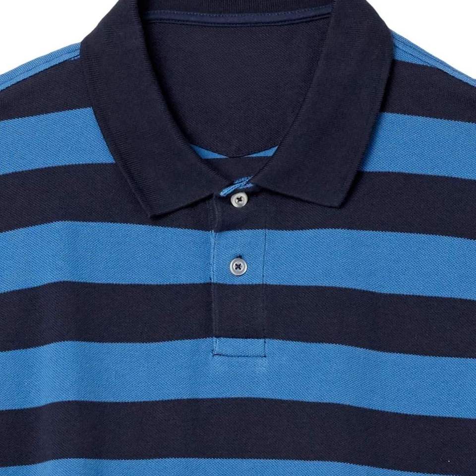 เสื้อโปโลพิมพ์ลายลายเส้นสีน้ำเงินดำแขนสามส่วนสำหรับฤดูร้อนเสื้อโปโลสวมใส่สบายออกแบบได้ทุกวัน