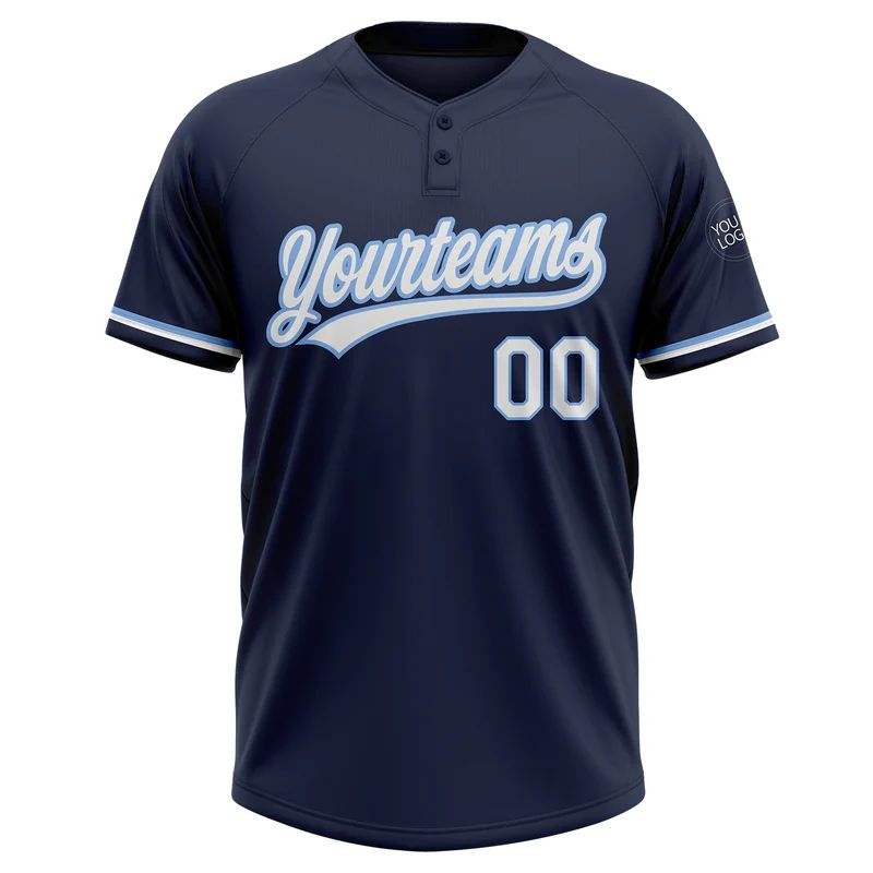 เสื้อซอฟต์บอลเบสบอลกระดุม2ปุ่มเสื้อเจอร์ซีย์แขนรูปดาวสีฟ้าแบบอเมริกันออกแบบได้ตามต้องการ