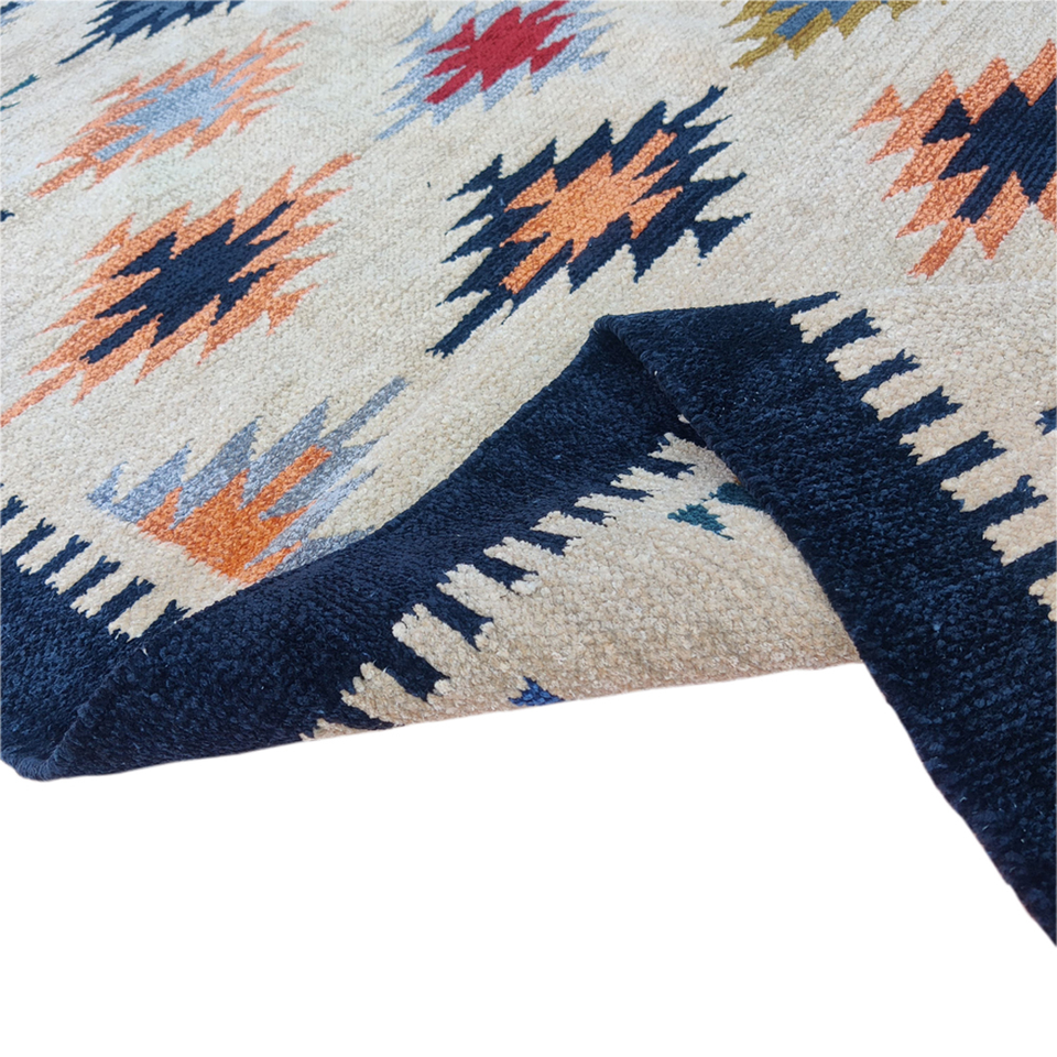 ชุดพรมพื้นที่ทำด้วยผ้าขนสัตว์ดีไซน์สีสันสดใสทำจากผ้าฝ้ายทอด้วยมือหรูหราขอบสีน้ำเงิน