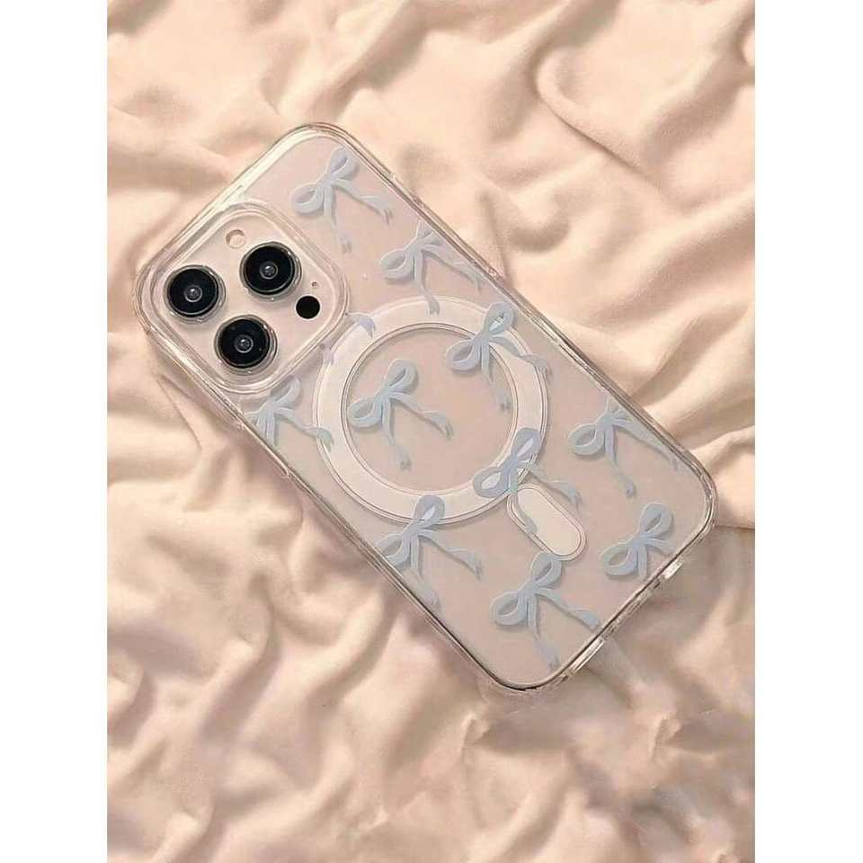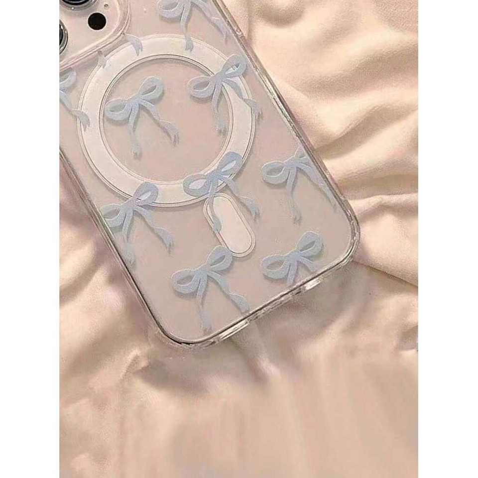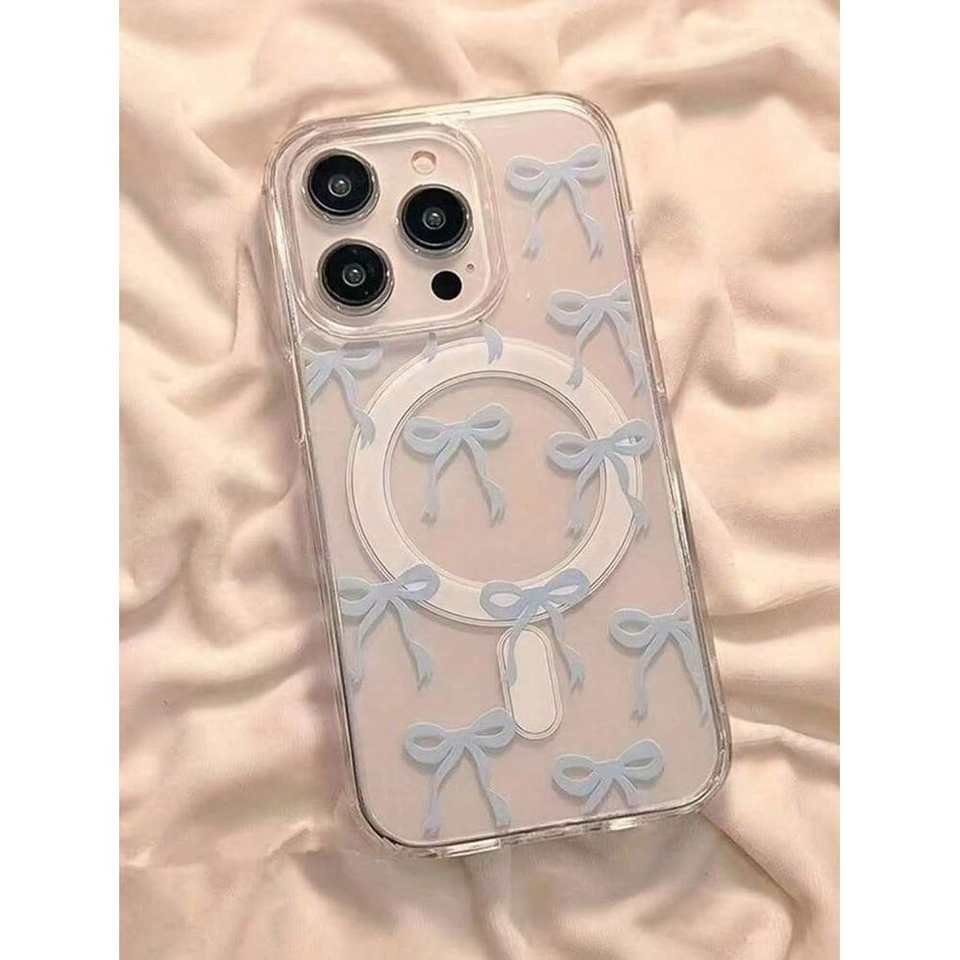 เคสโทรศัพท์แม่เหล็กสีฟ้าลายโบว์ สำหรับ iPhone 15 Pro Max วัสดุ PMMA ใส พร้อมลายนูน เคสมือถือสำหรับผู้หญิง