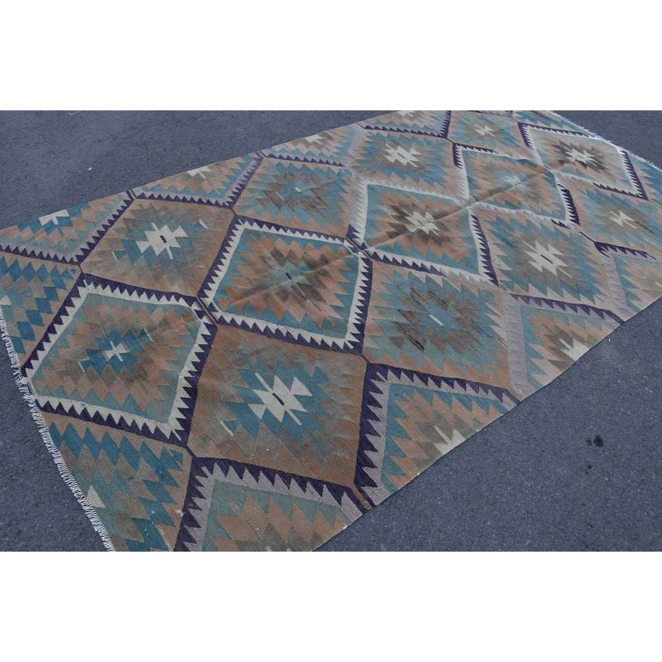 พรม kilim สีฟ้าสีน้ำตาลขนาด5.5x9.8ฟุต, ใหม่แบนทอห้องนั่งเล่นพรมแจ็คการ์ดเทคนิคสี่เหลี่ยมผืนผ้าสำหรับโถงทางเดิน