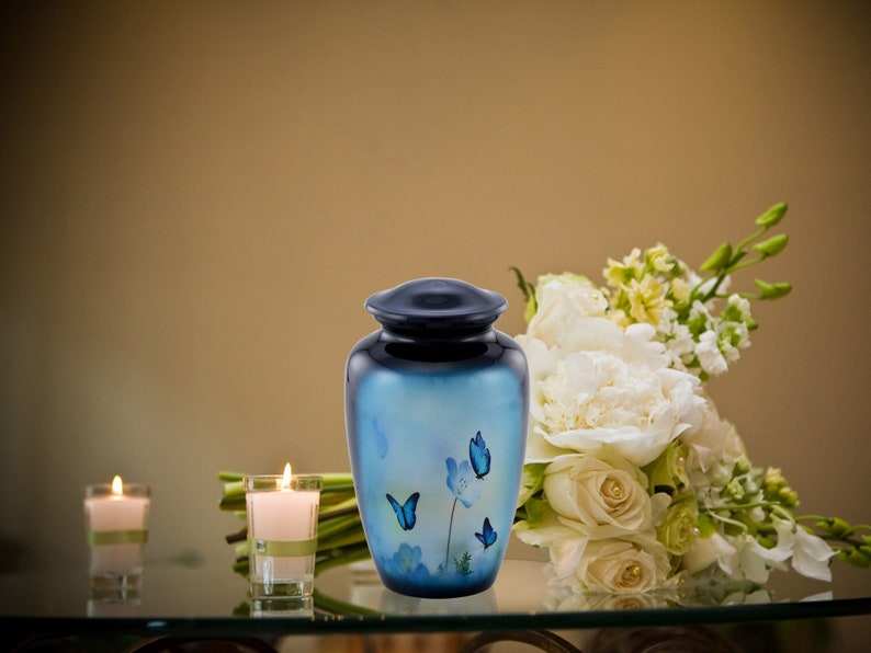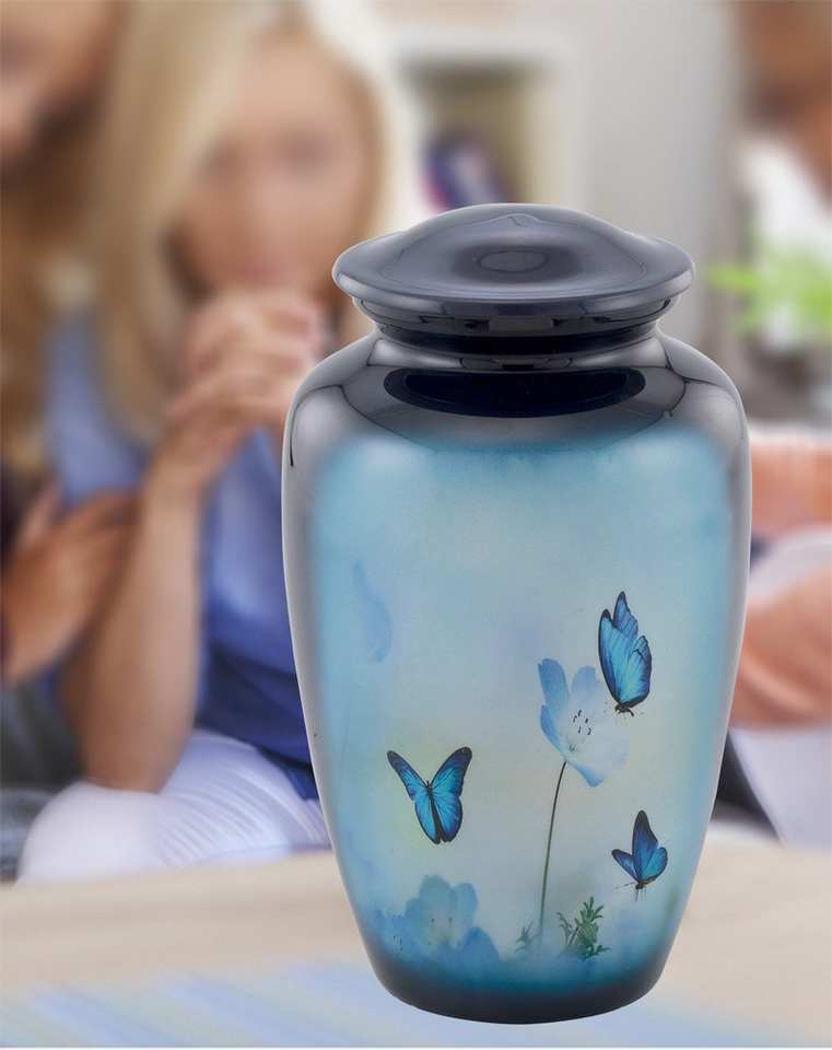 Blue Butterflies Cremation Urn for Ashes Butterflies Urns for Human Ashes Funeral & Memorial Urn Holds Upto 200lbs