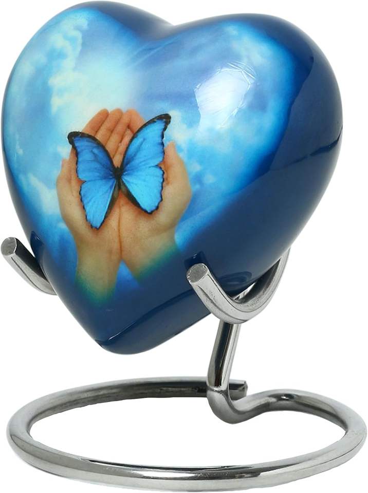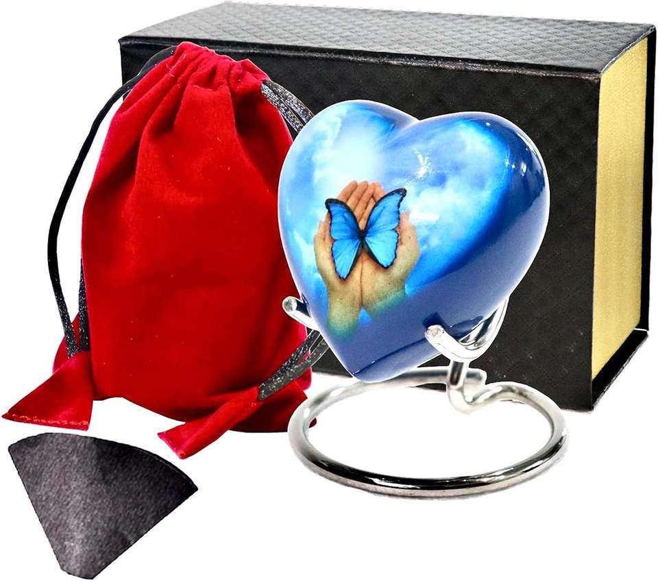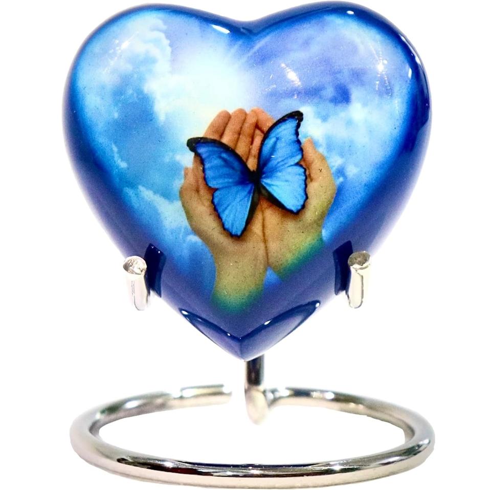 ผีเสื้อสีฟ้าขนาดเล็กรักหัวใจโกศสำหรับมนุษย์ขี้เถ้ายังคงอยู่