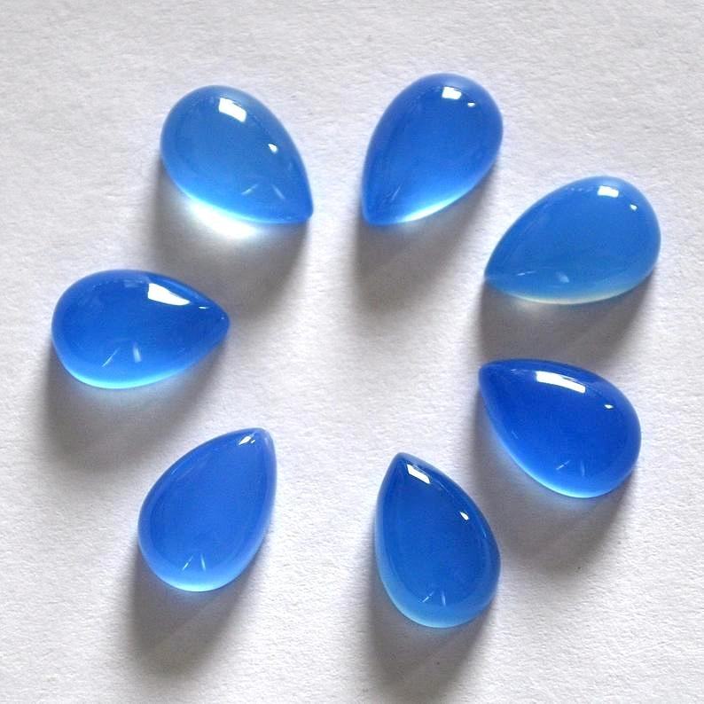 เครื่องประดับอัญมณีทรงลูกแพร์ขัดเงาแบบเรียบทำจากหินควาโซนีพลอยคาโบชองสีฟ้า