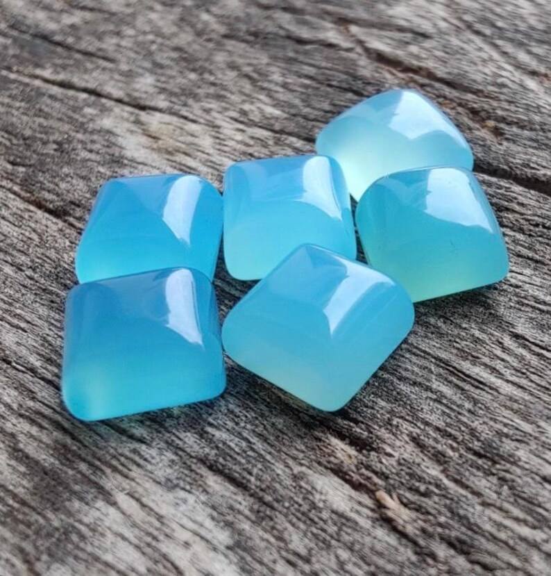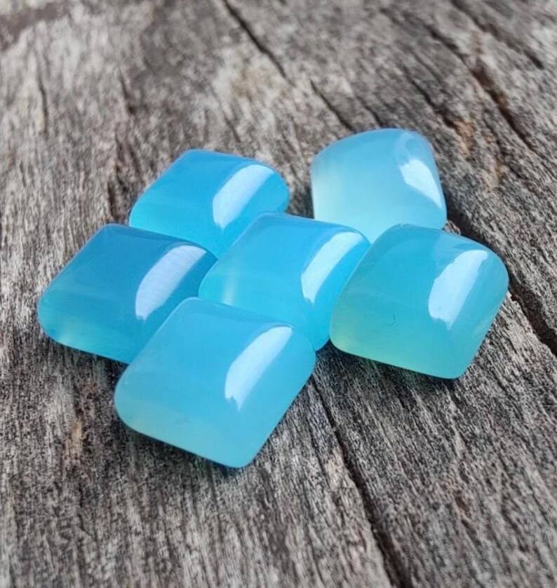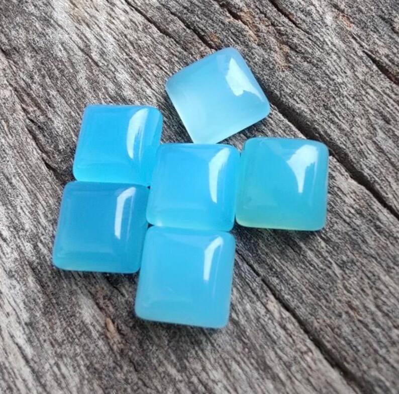 บลูคาลซีโดนี คาโบชองส์ พลอยทรงสี่เหลี่ยม 5 ชิ้น/ล็อต พลอยธรรมชาติแบบหลวมสำหรับทำเครื่องประดับ