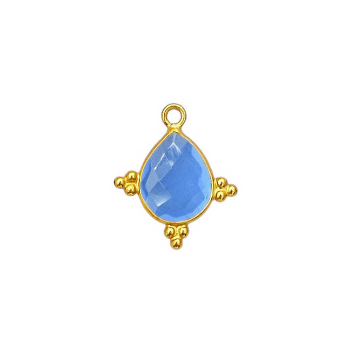 ลูกปัดสีฟ้าควอตซ์แบบแฟนซีสำหรับประดับอัญมณีสเตอร์ลิงชุบทองทำด้วยมือจี้รูปกรอบแบบแฟนซีเครื่องประดับตัวเชื่อมต่อที่มีเสน่ห์