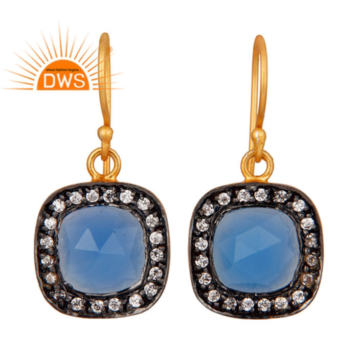 Blue Chalcedony Gemstone Earrings Wholesale 18k Gold Plated Designer Silver Hook Earrings Jewelry